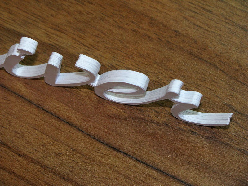 Ich hab den Schriftzug etwa 25x ausschnippeln lassen und dann die Schichten aufeinandergeklebt. So kann der Name frei stehen. Sieht zwar nicht ganz so schön aus, wie die lasergeschnittenen Schriftzüge aus Holz, aber diese Variante kam auch gut an.